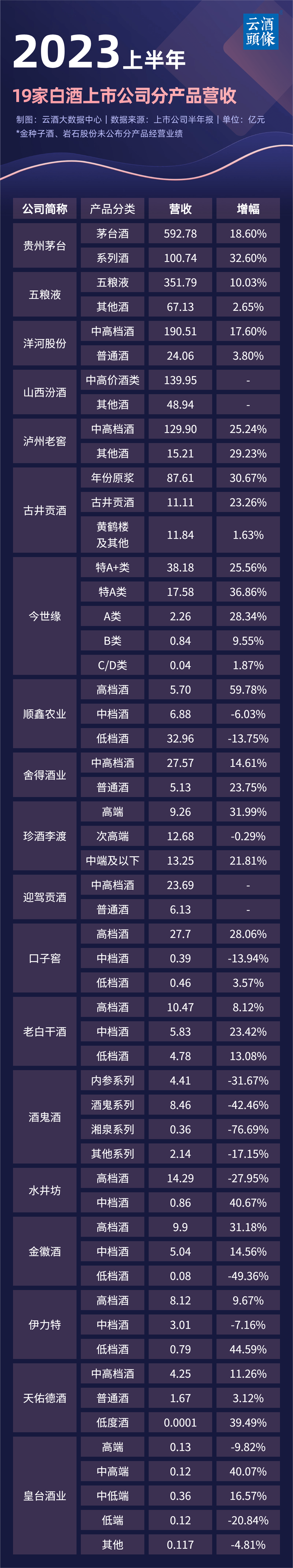 以贵州茅台为例,今年上半年茅台酒营收592.78亿元,同比增长18.6%,系列酒营收100.74亿元,同比增长32.6%。
