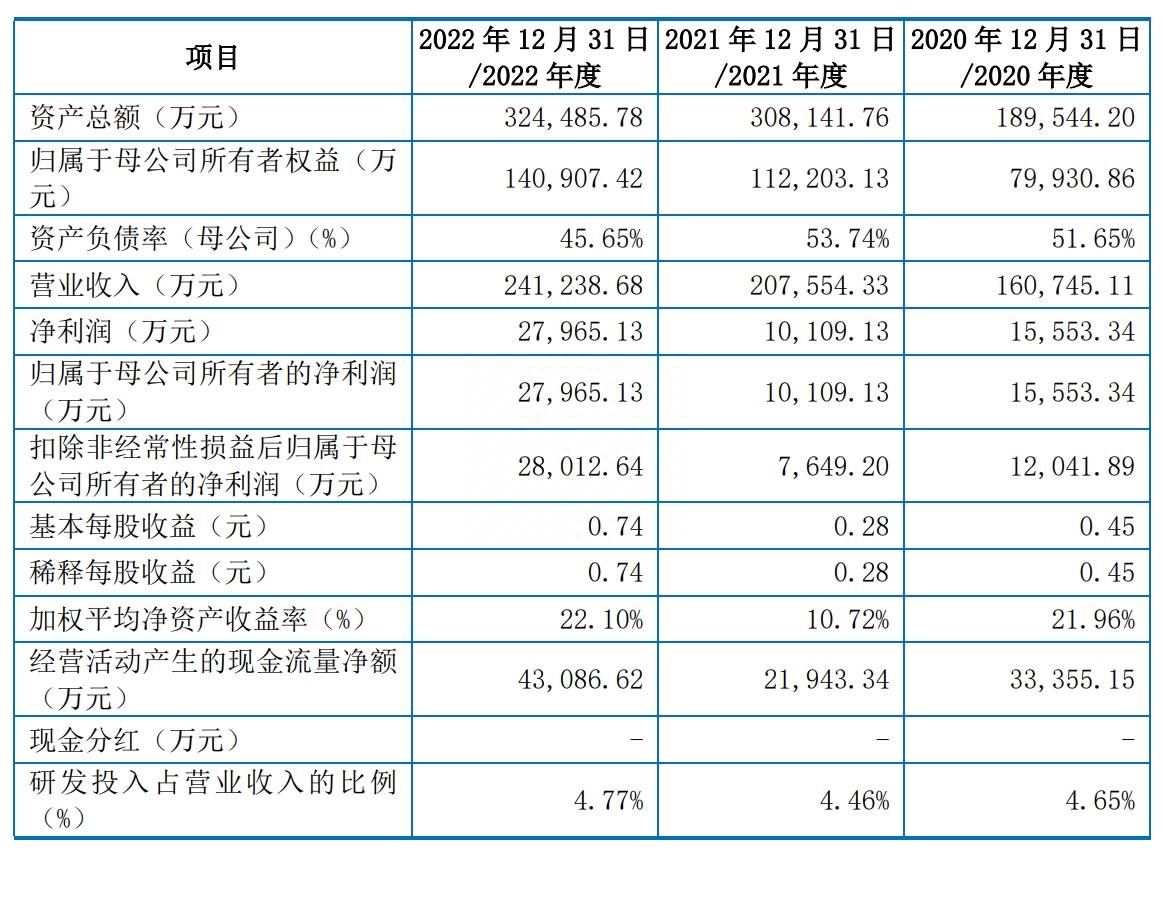 招股书显示,广合科技2020年、2021年、2022年营收分别为16.1亿元、20.76亿元、24.1亿元;净利分别为1.56亿元、1.01亿元、2.8亿元;扣非后净利分别为1.2亿元、7649.2万元、2.8亿元。