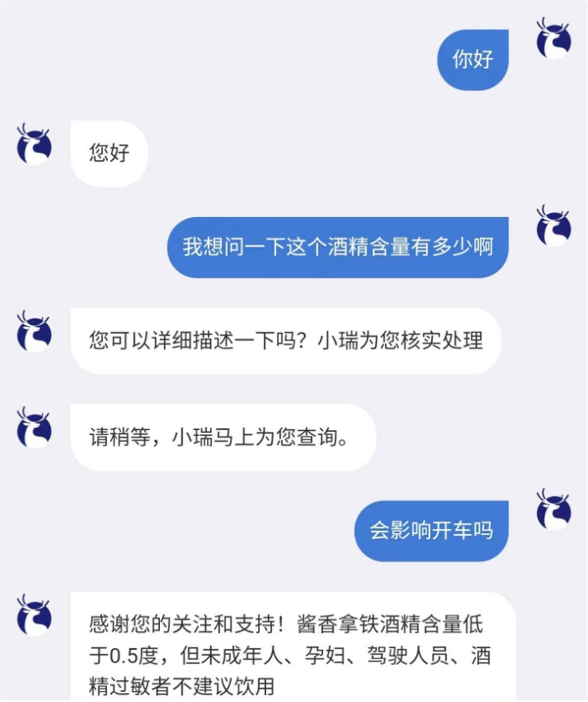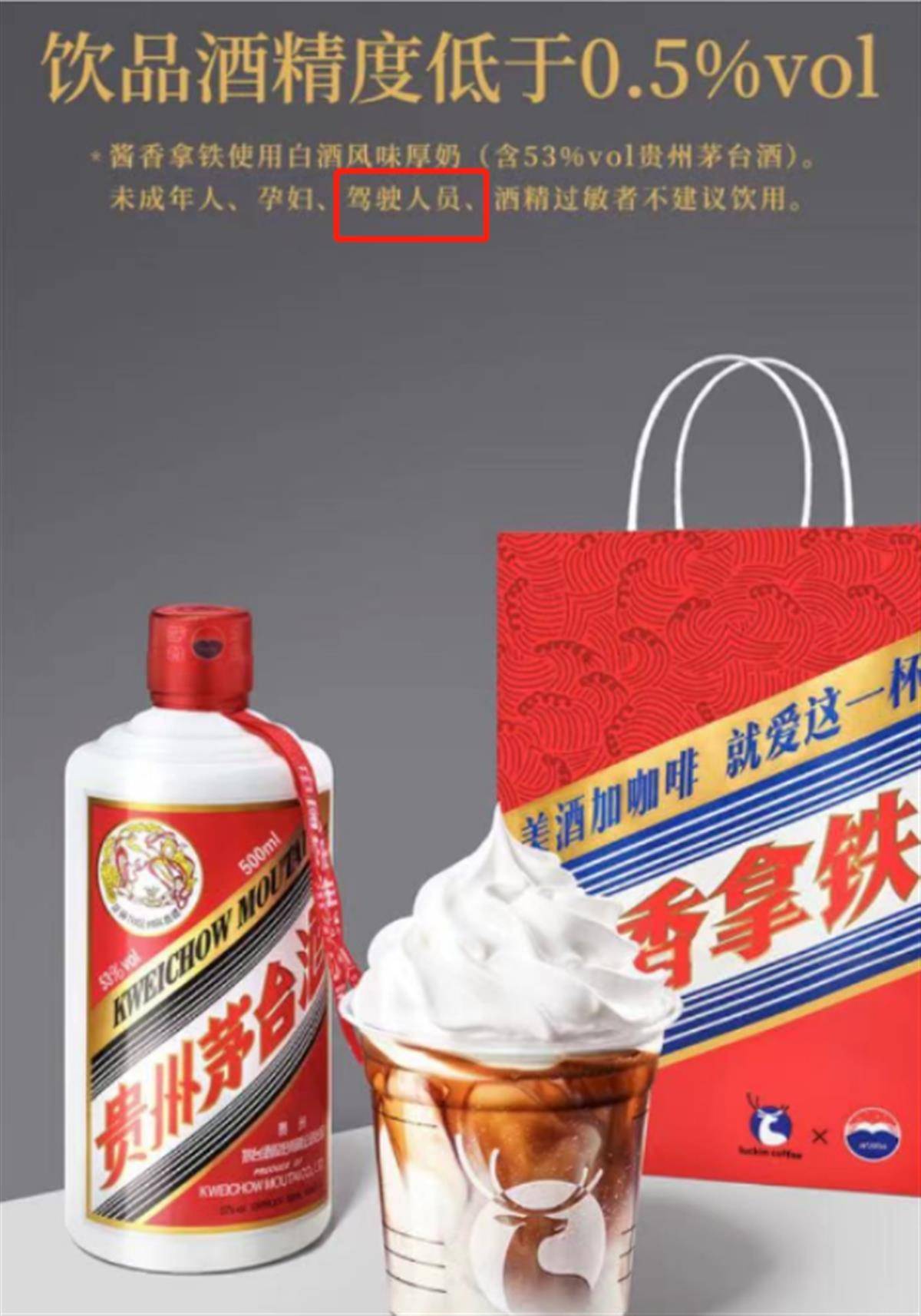 据潇湘晨报、每日经济新闻报道,9月4日,贵州茅台与瑞幸咖啡推出的联名咖啡“茅台瑞幸酱香拿铁”正式上架开卖。“咖啡含酒”?很多网友发出质疑,那这款咖啡开车时能喝吗?对此,瑞幸官方小程序客服回应称:酱香拿铁酒精含量低于0.5度,但未成年人、孕妇、驾驶人员、酒精过敏者不建议饮用。