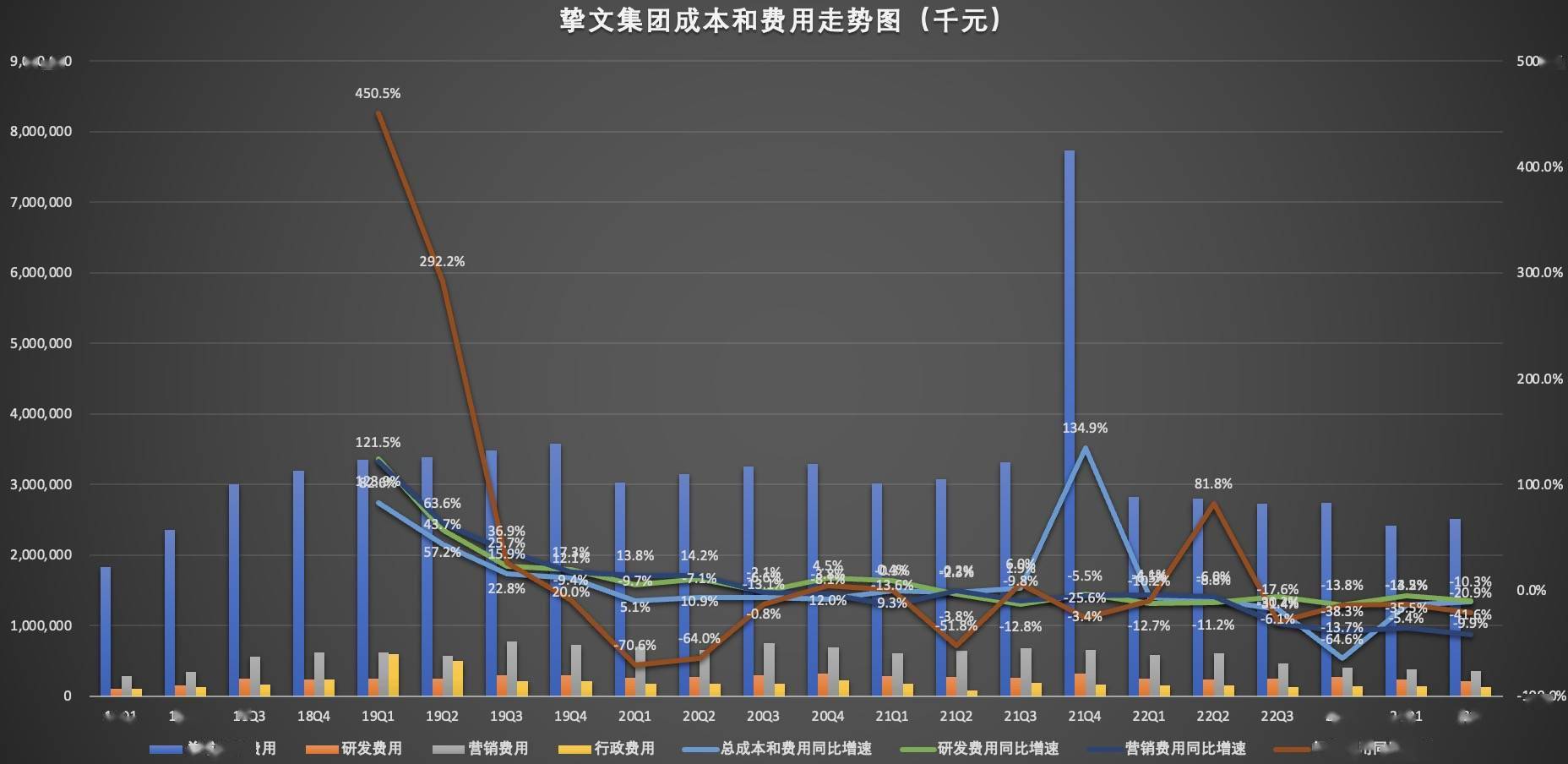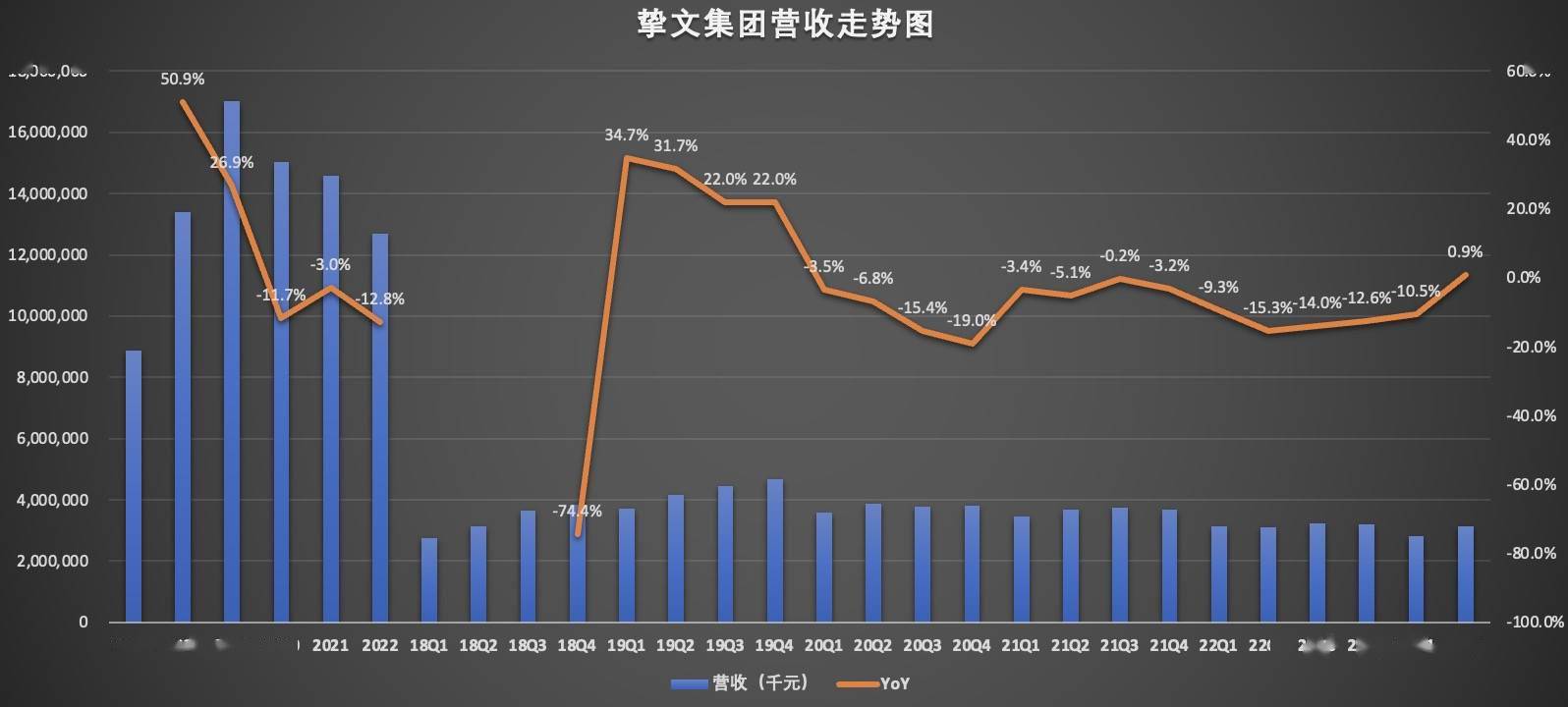 在本季度之前,受公卫生事件影响,挚文集团的营收已经连续13个季度同比负增长,虽说本季度营收同比增速不及1%,但终究由负转正,相比之前三年的表现,也算出色了。