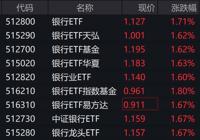 原标题:银行股走强,银行ETF普涨逾1.6%