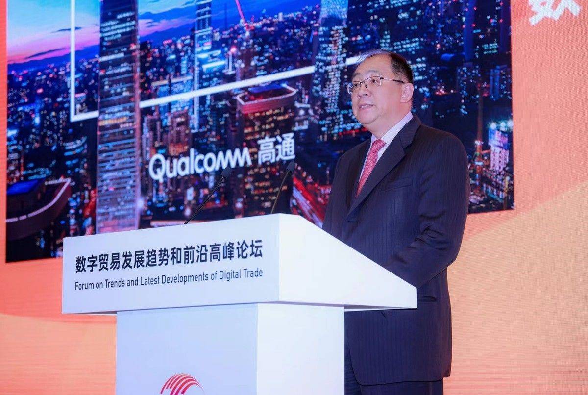 高通公司中国区董事长孟樸在“数字贸易发展趋势和前沿高峰论坛”上发表主题演讲