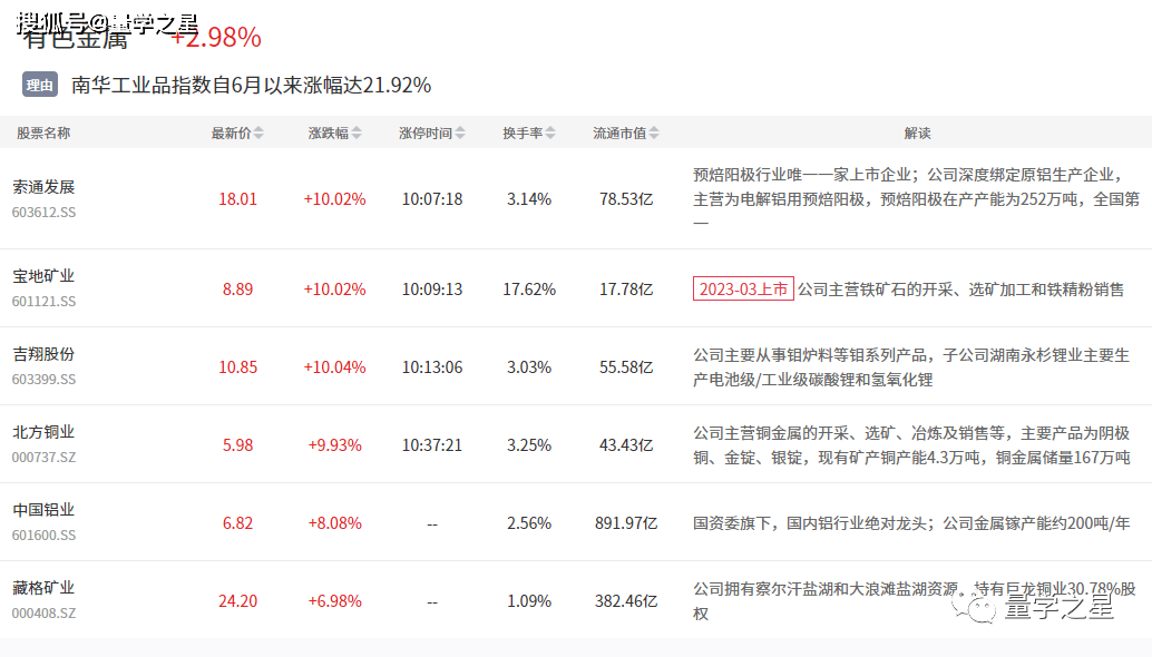 有色金属板块今日大涨,索通发展、宝地矿业、吉翔股份等涨停。