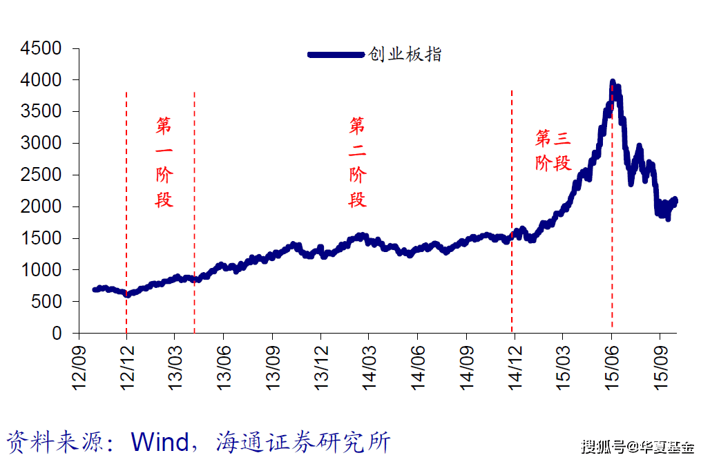 第一波随着移动互联浪潮开始兴起,创业板从2012年12月的585点,涨到4037点,历时2年半,涨幅超550%;