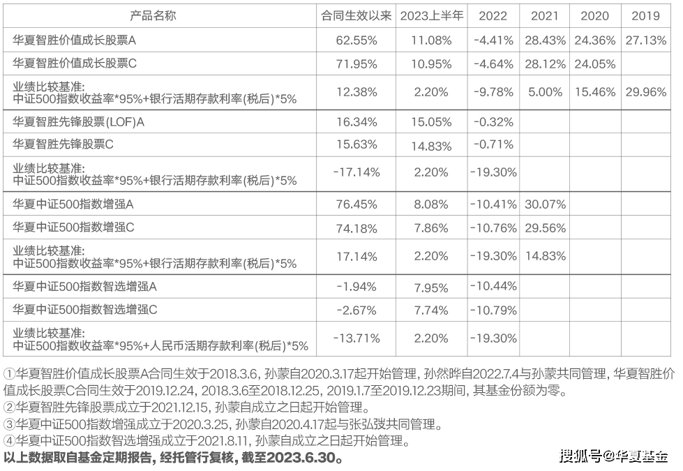 数据来源:基金二季报,经托管行复核,2023-6-30。华夏中证500指数增强A成立于2020-3-25,张弘弢自产品成立之日起管理,孙蒙自2020年4月17日起与张弘弢共同管理。产品业绩比较基准:中证500指数收益率*95%+银行活期存款利率(税后)*5%。基金的过往业绩并不预示其未来表现,基金管理人管理的其他基金的业绩并不构成本基金业绩表现的保证。