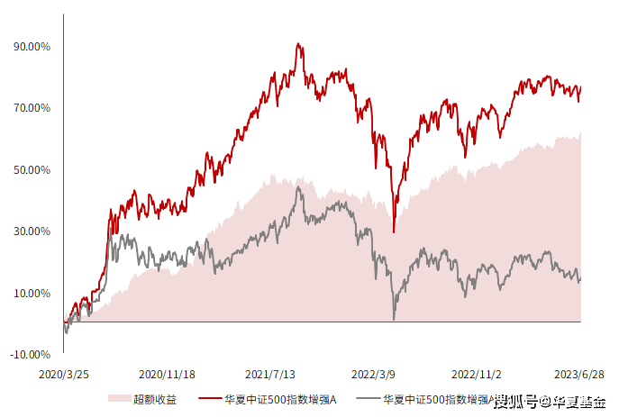 数据来源:基金二季报,经托管行复核,2023-6-30。华夏中证500指数增强A成立于2020-3-25。产品业绩比较基准:中证500指数收益率*95%+银行活期存款利率(税后)*5%。基金的过往业绩并不预示其未来表现,基金管理人管理的其他基金的业绩并不构成本基金业绩表现的保证。排名数据来自银河证券,截至2023,6.30,排名分类为增强规模指数股票型基金(A类)。上述基金评价结果、基金过往业绩及其净值高低并不预示其未来表现,亦不构成对本基金业绩表现的保证。