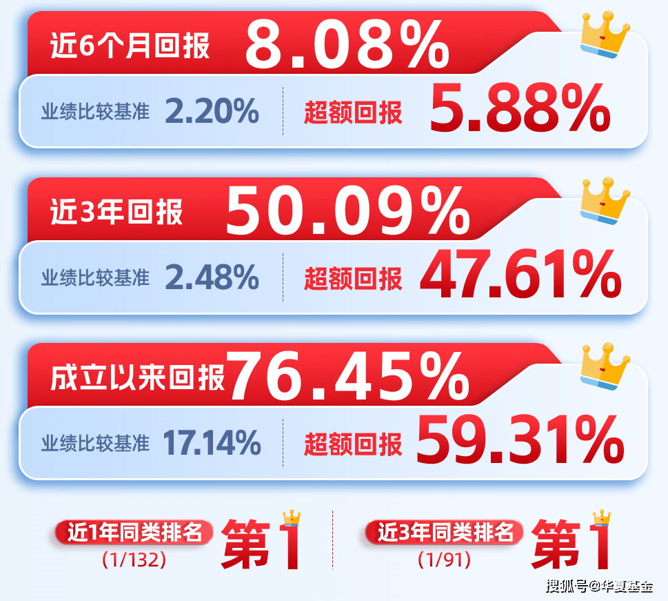 同时华夏中证500指数增强各阶段业绩表现优秀,大幅跑赢业绩比较基准,近一年银河证券同类排名第1(1/132),近3年同类排名第1(1/91),在同类基金中均占据冠军。