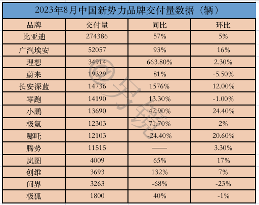 在刚刚公布的8月销量中,理想依然保持销量靠前,销量达3.4万辆,同比大增663.8%;8月交付量1.93万,同比大增81%;小鹏连续两个月交付量过万,交付1.37万辆,同比大增43%。