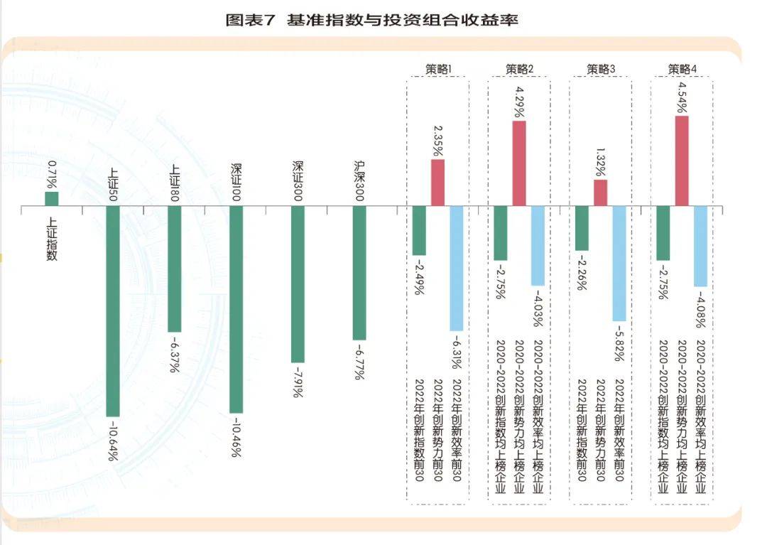 2022年创新指数、创新势力和创新效率分别排名前30及前50的上市公司作为投资组合。