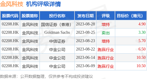 截至2023年9月4日收盘,金风科技(02208.HK)报收于4.23港元,上涨2.67%,换手率0.63%,成交量486.61万股,成交额2034.1万港元。投行对该股的评级以跑赢行业为主,近90天内共有3家投行给出跑赢行业评级,近90天的目标均价为6.9港元。国信证券(香港)最新一份研报给予金风科技增持评级,目标价4.9港元。