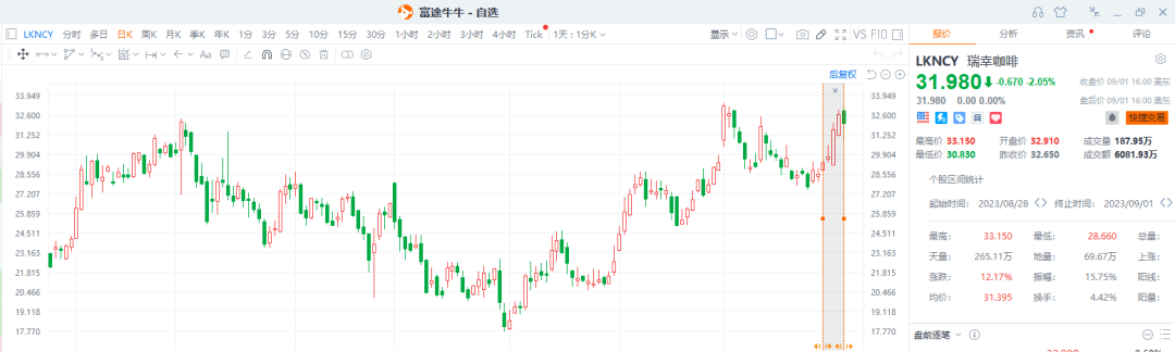 实际上,在瑞茅联名产品上市前,双方联名消息就提早近1周被泄露,在消息泄露后,瑞幸股价在5日内涨超12%。在今日现象级的联名后,股价如何演绎,值得期待。