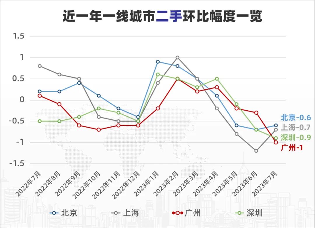 根据国家统计局的数据显示,今年7月,广州二手房价环比下降1%,在一线城市中降幅居于榜首。