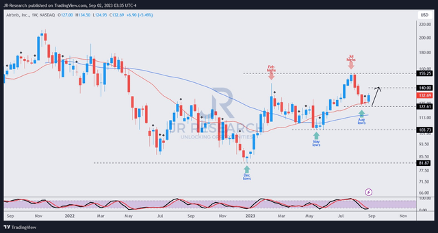 尽管爱彼迎在 7 月份触顶,但在过去三周内大幅下跌,买家重新强势捍卫 120 美元区域,有助于维持其中期上升趋势偏见。这标志着爱彼迎的显着触底,表明投资者对爱彼迎的执行能力仍然充满信心,尽管它隐含着增长溢价。