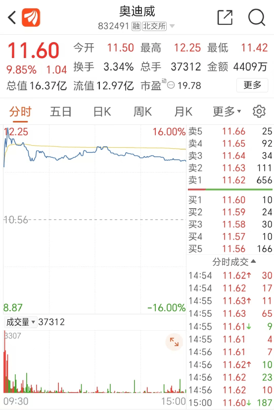 9月4日,奥迪威股价开盘高开逾8%,最终以大涨9.85%收盘,目前市值为16.37亿。
