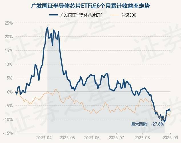 9月1日,广发国证半导体芯片ETF最新单位净值为0.4913元,累计净值为0.9826元,较前一交易日下跌0.75%。历史数据显示该基金近1个月下跌5.7%,近3个月下跌10.16%,近6个月下跌4.85%,近1年下跌13.11%。该基金近6个月的累计收益率走势如下图:
