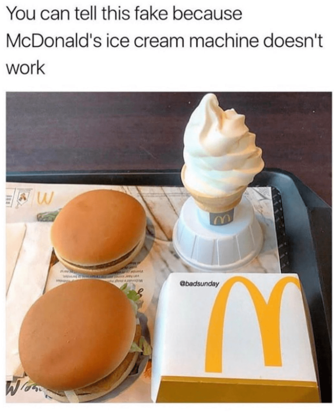 看得出来这个是假的,因为麦当劳的冰淇淋机根本不会工作