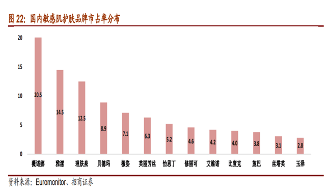 招商证券数据显示,2019年薇诺娜以20.5%的市占率力压一众外资成为新的行业老大。