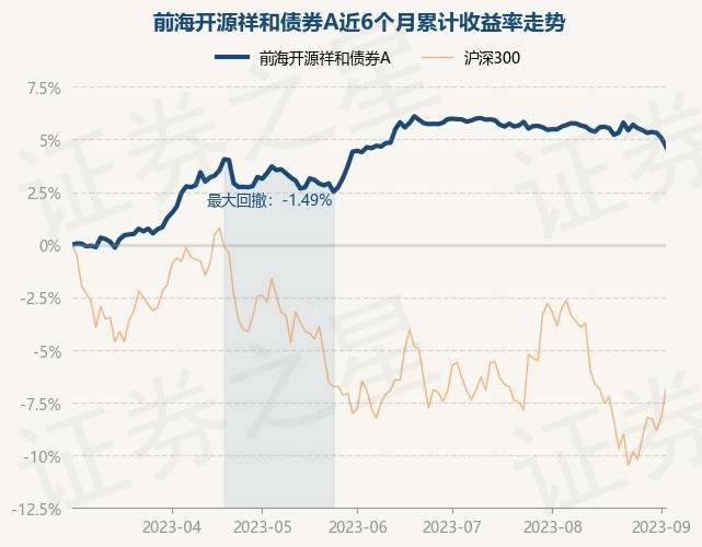 9月4日,前海开源祥和债券A最新单位净值为1.3983元,累计净值为1.4683元,较前一交易日下跌0.4%。历史数据显示该基金近1个月下跌1.0%,近3个月上涨0.22%,近6个月上涨4.61%,近1年下跌0.54%。该基金近6个月的累计收益率走势如下图:
