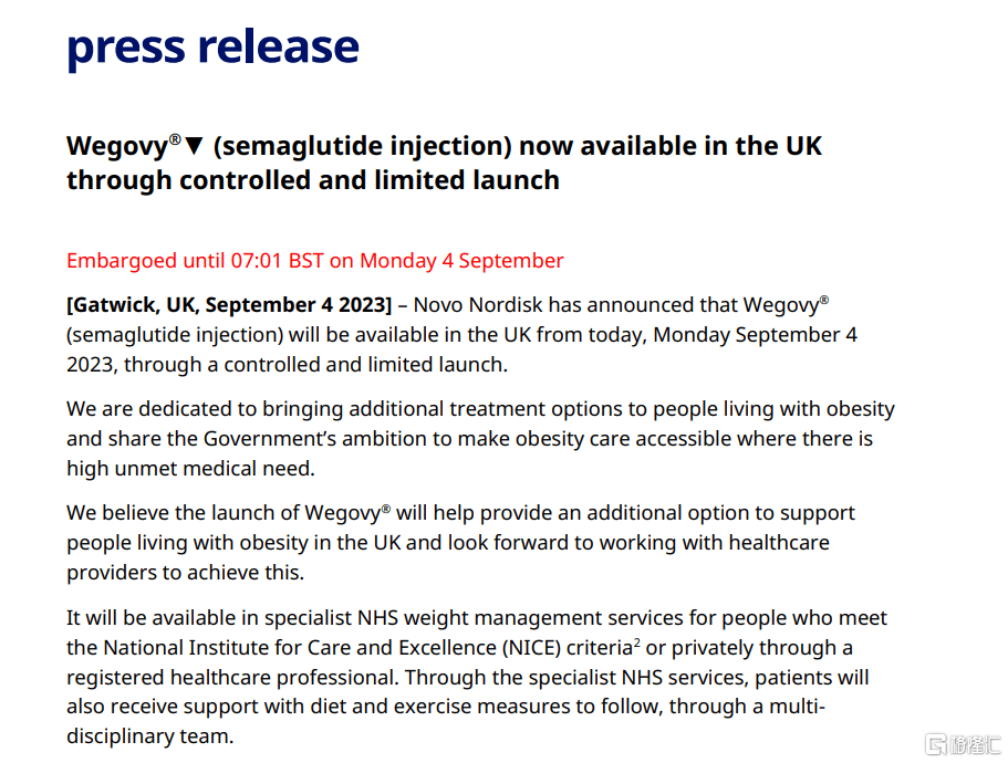 当地时间周一,诺和诺德宣布,全球爆火的减肥药Wegovy已经登陆英国。不过,受到供应紧张影响,诺和诺德特别强调,该药在英国的首发是“受控且有限”的。