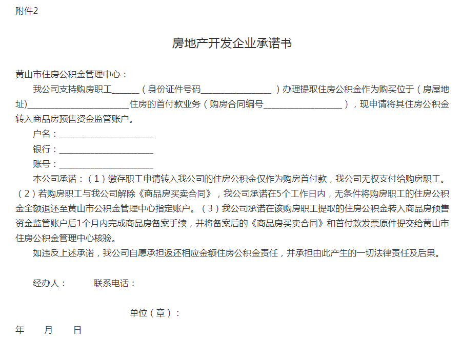 1.所购房屋是黄山市行政区域内的新建预售商品住房,且该商品住房的开发企业已向黄山市住房公积金管理中心(含区县管理部,以下简称“公积金中心”)作出承诺。