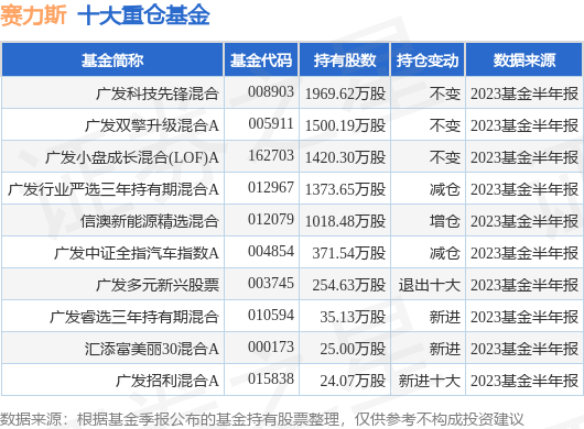重仓赛力斯的前十大公募基金请见下表: