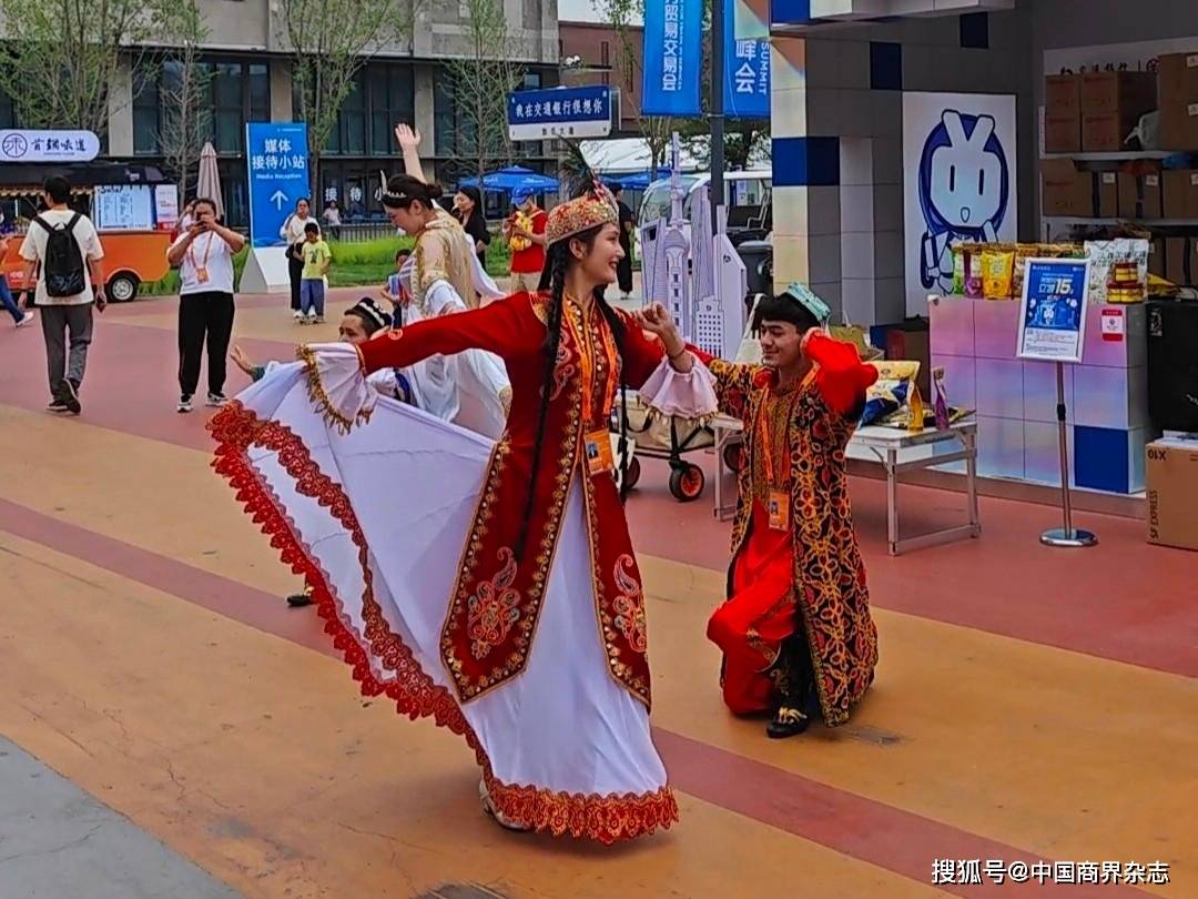 在数字人民币大道上,交通银行邀请新疆大厦、中国电影通、张一元等商户共同携手打造美食、趣玩、健康、影视、休闲等数币消费场景。9月2日上午,在交通银行数币大道展区前,两组俊男靓女跳起维吾尔族舞蹈,吸引不少观众摄影拍照。