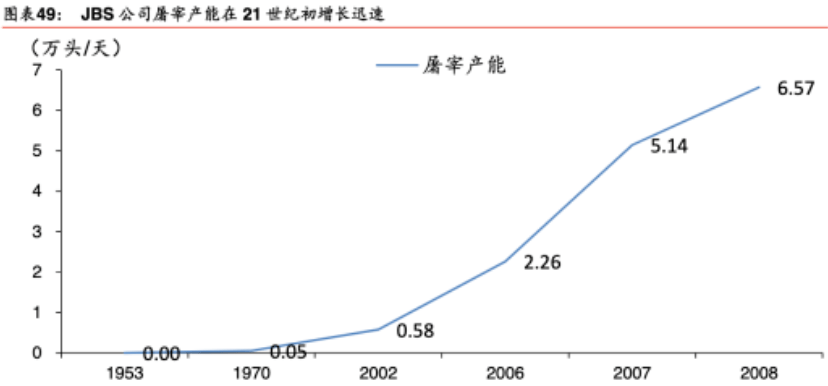 2008年,JBS收购了澳大利亚的Tasman公司和美国史密斯菲尔德的牛肉业务,以及Five Rivers养殖场,每年可出栏200万头牲畜。