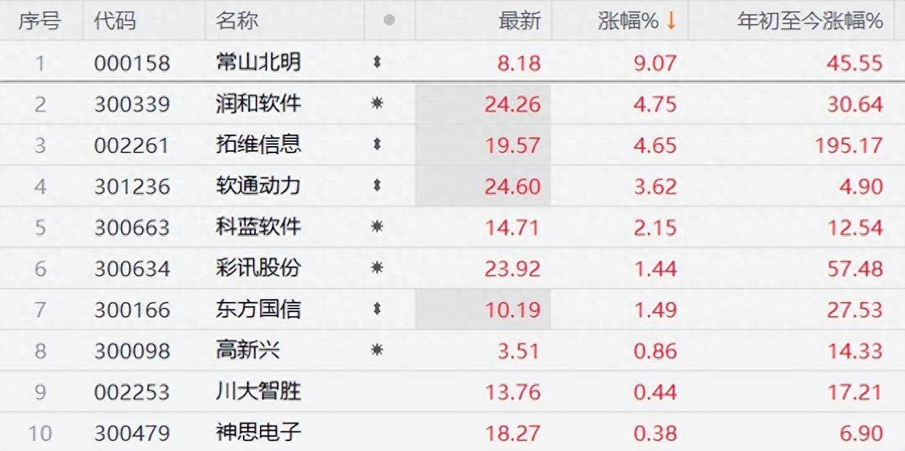 昨天午盘有报道称华为mate60芯片是由中芯国际代工,昨天尾盘中芯国际爆拉带动A股、港股半导体板块大涨,昨晚华为概念继续发酵,今天早盘冲高,常山北明、润和软件、拓维信息等大涨。