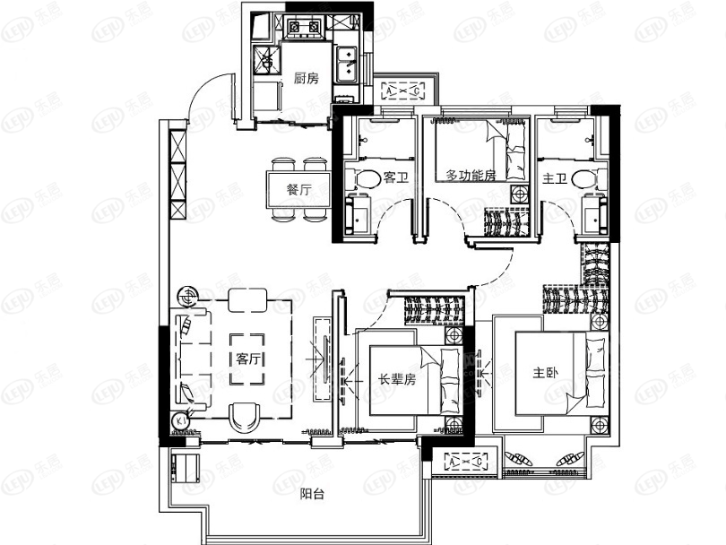 保利大都汇楼盘目前主推30~113㎡平米户型,整体户型方正、半通透、明厨明卫;阳台连接客厅和长辈房,采光尚可;主卧带独立卫生间,并留有衣帽间的位置;整体户型中规中矩。
