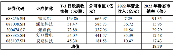 截至 2023 年 8 月 30 日(T-3 日),可比上市公司的市销率水平如下: