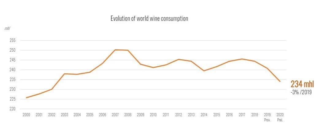 再结合欧盟批准援助时的数据,欧洲排名靠前的葡萄酒消费大国其消费量全部在下降,法国下降15%,西班牙下降10%,意大利下降7%,德国下降22%,葡萄牙下降34%。而与此同时,波尔多产区的葡萄酒产量增长4%。