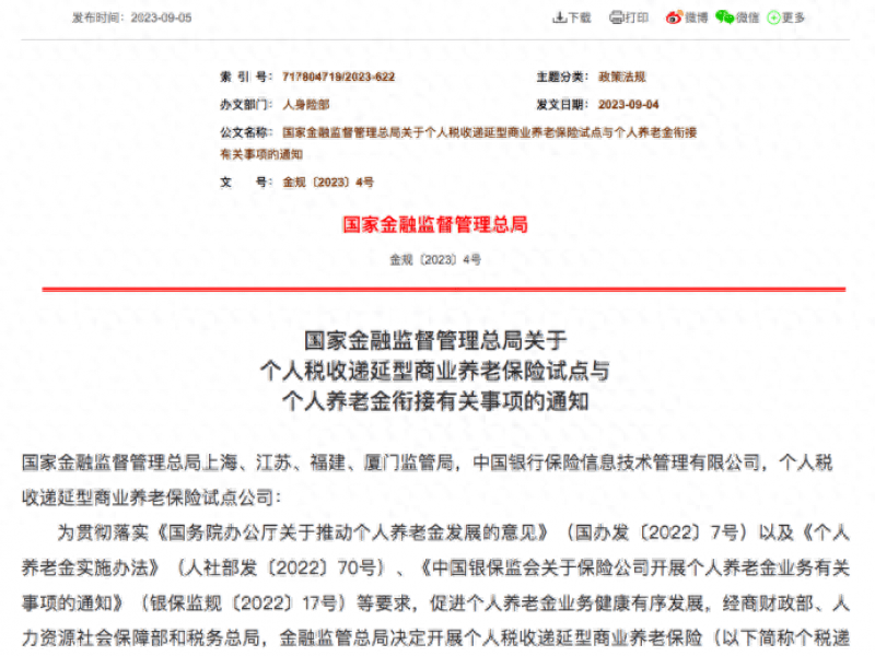 金融监管总局:有序开展税延养老险与个人养老金的衔接,原则上于2023年底前完成各项工作|快讯