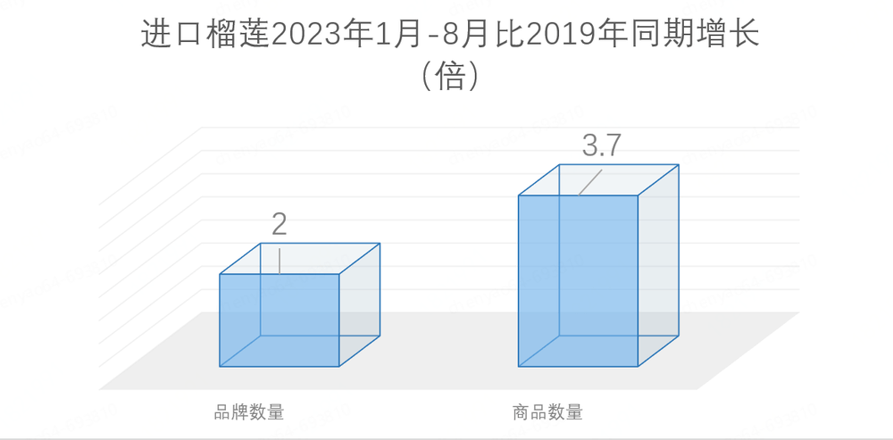 * 2023年1月至8月,线上销售的进口榴莲销量比2019年同期增长3.4倍,品牌数增长超过2倍,商品数量增长3.7倍;
