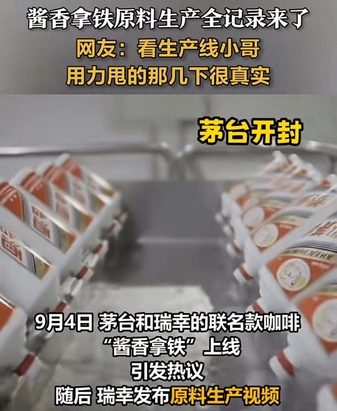 使用白酒风味厚奶、含53度贵州茅台酒的“酱香拿铁”,酒精度低于0.5%,零售价38元/杯,使用优惠券后预计19元/杯。低酒精厚奶先是引发了“有无白酒成分”的质疑,随后瑞幸发布原料生产视频辟谣。
