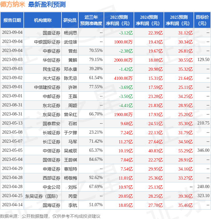 以下是详细的盈利预测信息: