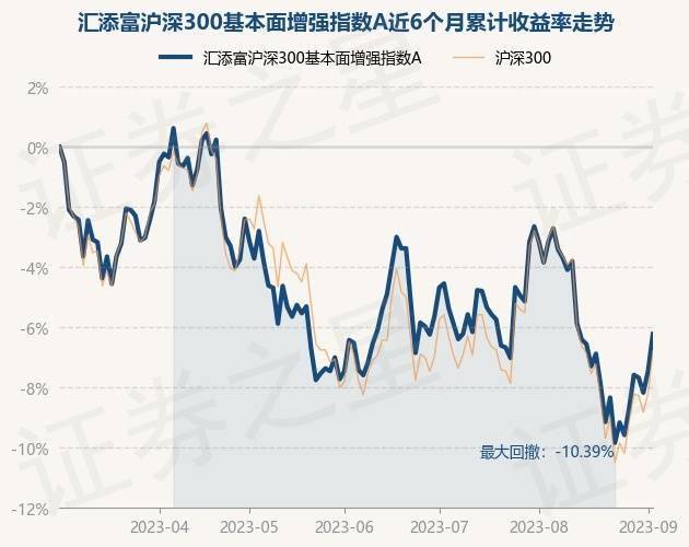 9月4日,汇添富沪深300基本面增强指数A最新单位净值为0.6229元,累计净值为0.6229元,较前一交易日上涨1.32%。历史数据显示该基金近1个月下跌3.61%,近3个月上涨0.23%,近6个月下跌6.2%,近1年下跌9.49%。该基金近6个月的累计收益率走势如下图: