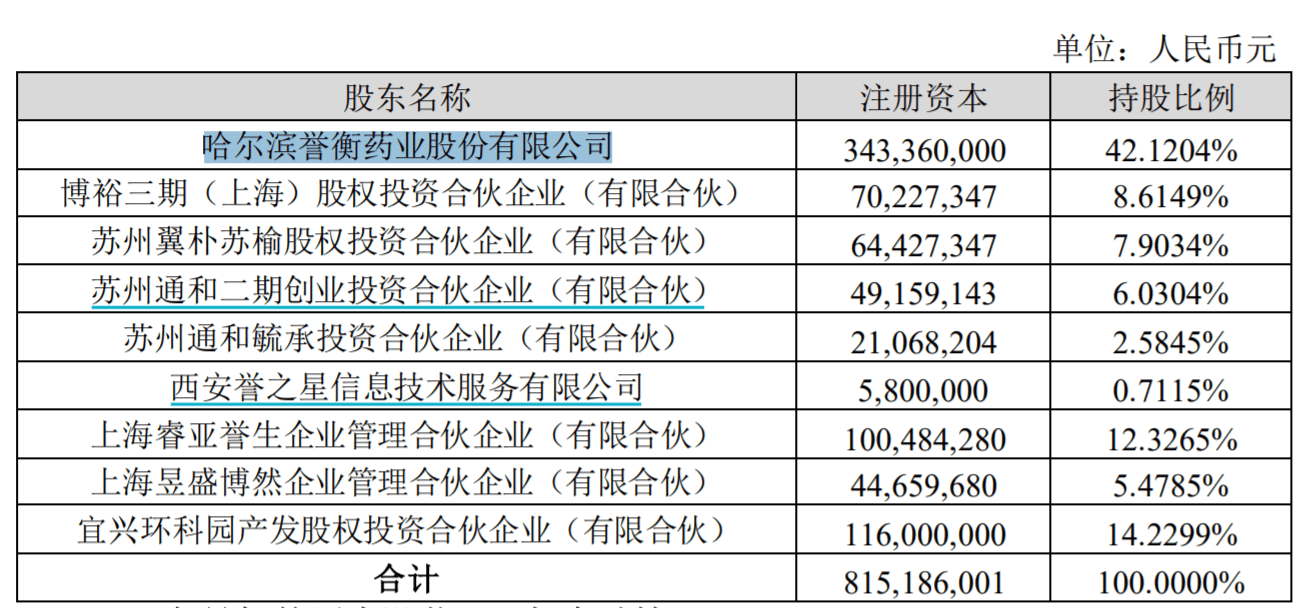 誉衡生物股权结构