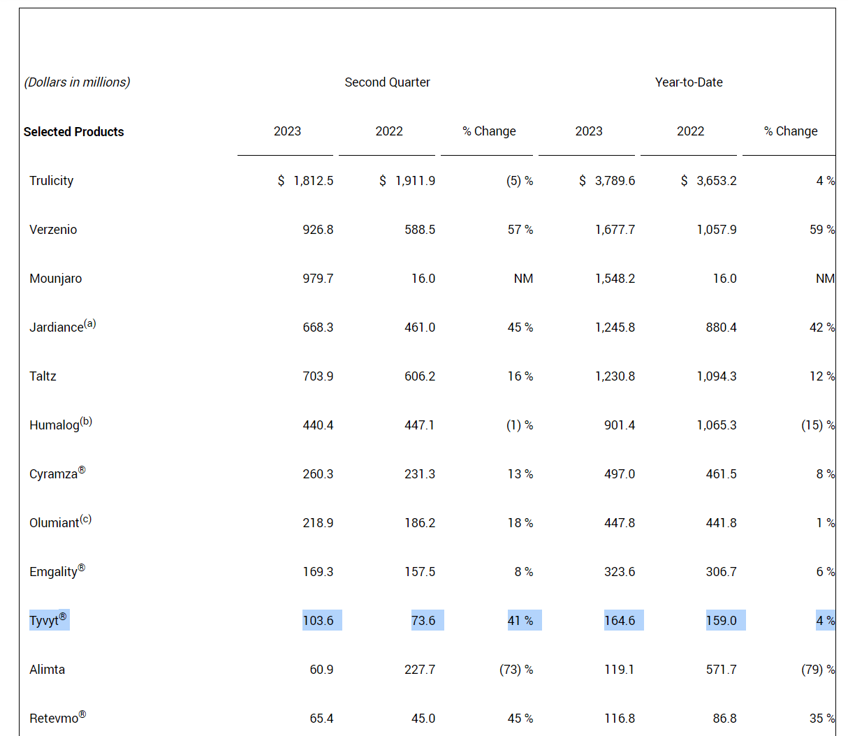 礼来二季报提到信迪利单抗的销售数据 来源:礼来二季报