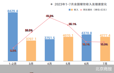 餐饮业作为促消费、惠民生、稳就业的重点领域,对于扩大内需、推动形成强大国内市场、服务构建新发展格局发挥着重要作用。根据《北京餐饮业观察报告显示》,2023年1-6月,全国餐饮收入24329亿元,同比增长21.4%。其中,本市餐饮业也迎来加速发展的新阶段。上半年全市餐饮收入656.7亿元,同比增长37.3%,超过全国增速15.9个百分点,占社零额比重9.4%,达到半年规模历史最高水平。