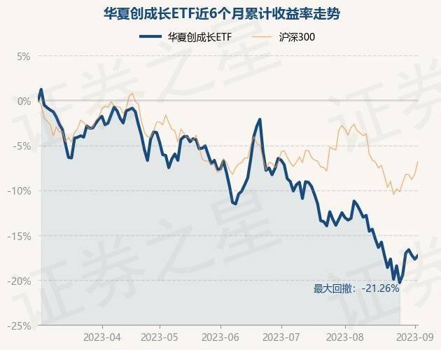 9月5日,华夏创成长ETF最新单位净值为0.4676元,累计净值为1.7013元,较前一交易日下跌0.89%。历史数据显示该基金近1个月下跌7.66%,近3个月下跌10.81%,近6个月下跌17.98%,近1年下跌26.48%。该基金近6个月的累计收益率走势如下图: