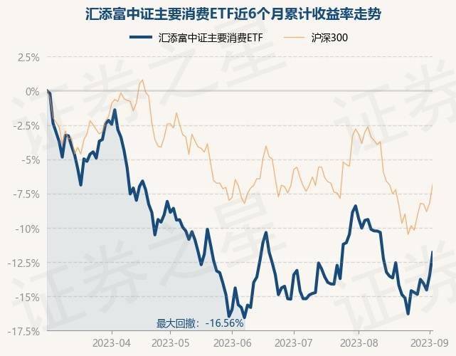 9月5日,汇添富中证主要消费ETF最新单位净值为0.9521元,累计净值为3.8084元,较前一交易日下跌0.94%。历史数据显示该基金近1个月下跌3.58%,近3个月上涨3.56%,近6个月下跌12.59%,近1年下跌8.3%。该基金近6个月的累计收益率走势如下图: