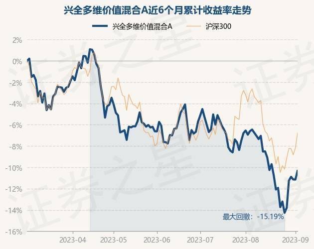 9月5日,兴全多维价值混合A最新单位净值为1.7384元,累计净值为1.7384元,较前一交易日下跌0.32%。历史数据显示该基金近1个月下跌4.45%,近3个月下跌4.82%,近6个月下跌10.61%,近1年下跌6.55%。该基金近6个月的累计收益率走势如下图: