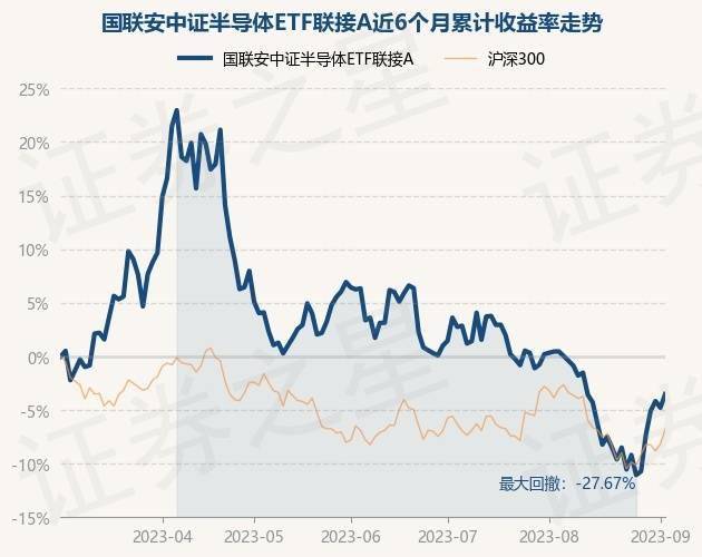 9月5日,国联安中证半导体ETF联接A最新单位净值为1.716元,累计净值为1.716元,较前一交易日下跌0.08%。历史数据显示该基金近1个月下跌3.62%,近3个月下跌9.3%,近6个月下跌3.54%,近1年下跌6.94%。该基金近6个月的累计收益率走势如下图: