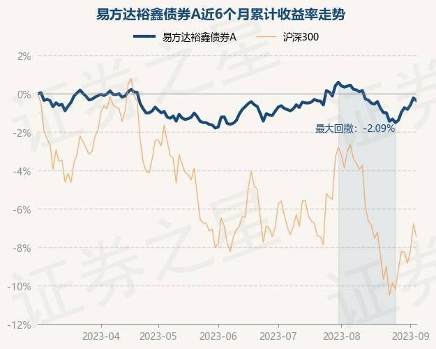 9月5日,易方达裕鑫债券A最新单位净值为1.3943元,累计净值为1.4633元,较前一交易日下跌0.14%。历史数据显示该基金近1个月下跌0.82%,近3个月上涨0.81%,近6个月下跌0.4%,近1年下跌0.71%。该基金近6个月的累计收益率走势如下图: