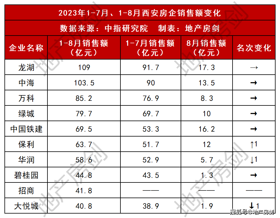 随着8月份结束,中指研究院《2023年1-8月西安房地产企业销售业绩TOP10》的发布,今年西安已经诞生2家百亿房企,截止8月底,龙湖、中海携手超百亿!