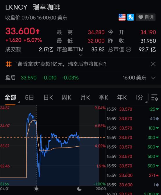 “酱香拿铁”持续火热,瑞幸咖啡大涨超5%!