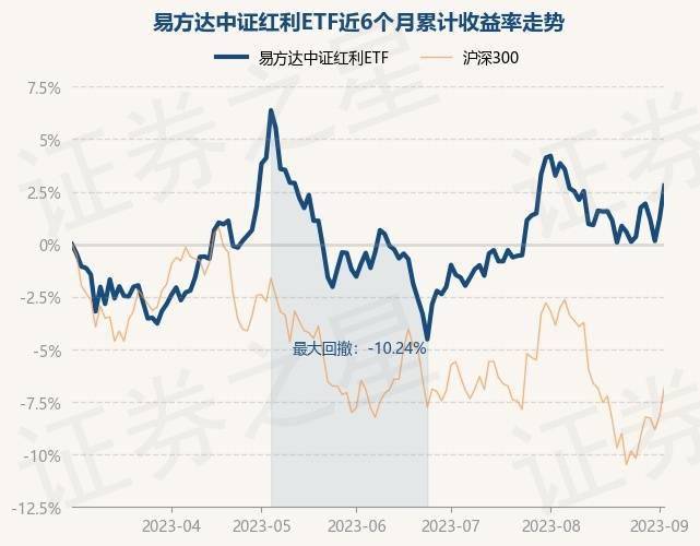 9月5日,易方达中证红利ETF最新单位净值为1.3419元,累计净值为1.4879元,较前一交易日下跌0.77%。历史数据显示该基金近1个月下跌1.52%,近3个月上涨2.38%,近6个月上涨1.98%,近1年上涨5.45%。该基金近6个月的累计收益率走势如下图: