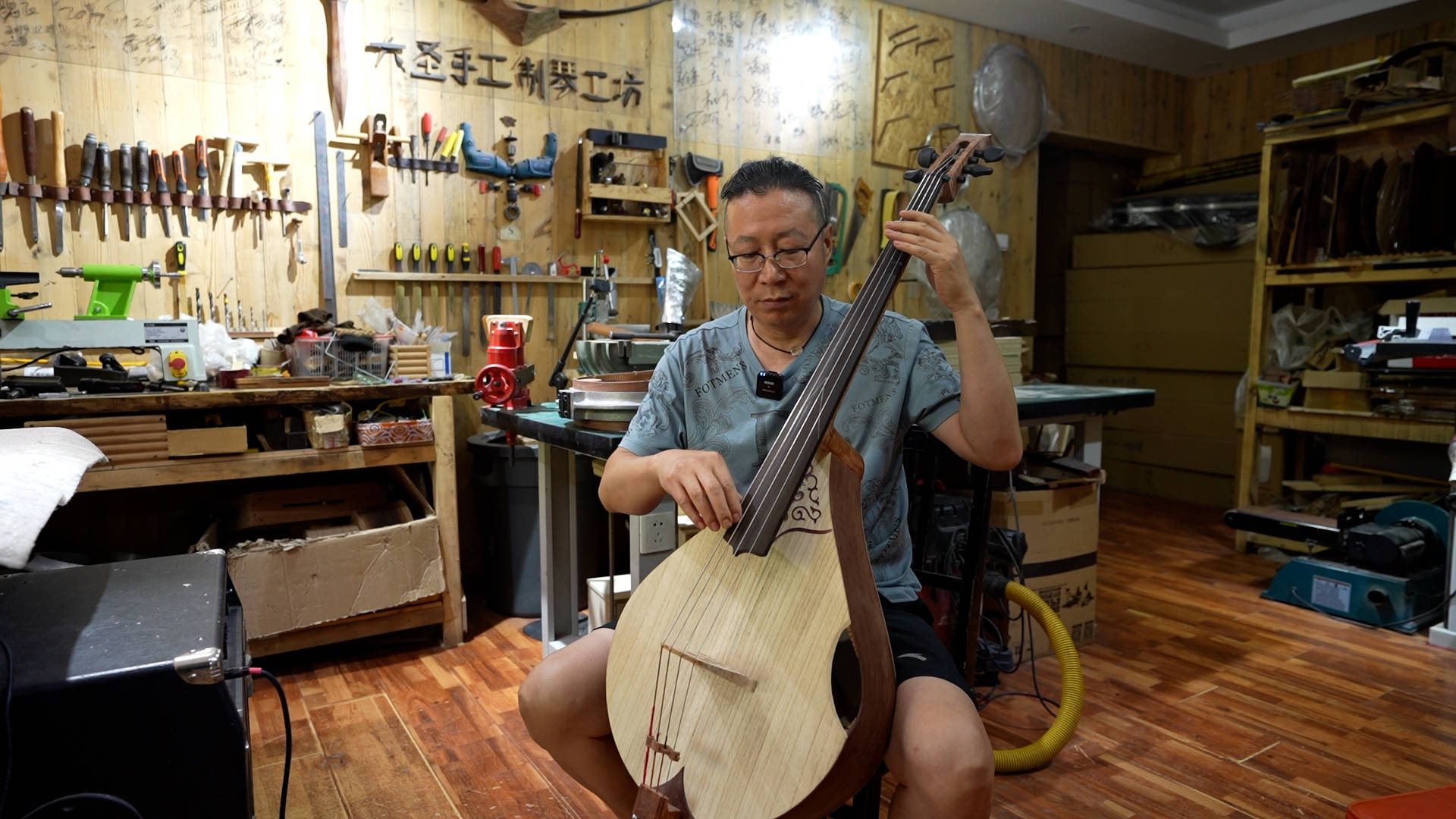 “有个清华教授曾跟我讲,中国缺一个自己的低音乐器,因为我是做琴的,就想着尝试一下,但我知道这很难,发明和改良不是一个概念,我当时翻了大量资料,把这个乐器的形状定下来以后,就去找配件,比如琴弦,但发现根本没有合适的,因为没有产业链。”