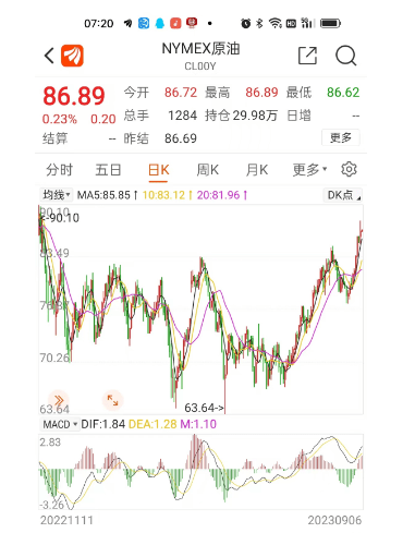 目前,纽约原油期货已从80美元/桶下方上涨到北京时间今天凌晨收盘86美元以上/桶,最高达88美元/桶;布伦特原油则从82美元左右/桶一口气涨到90美元以上/桶,双双创下近十个月以来的新高。