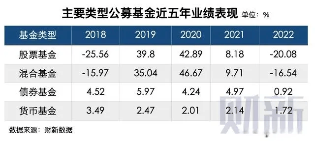根据财新数据,2018-2022年间,股票基金与混合基金均在2019、2020年表现突出,但在2022年,两者出现大幅度回调,债券基金也在2022年四季度出现回调。